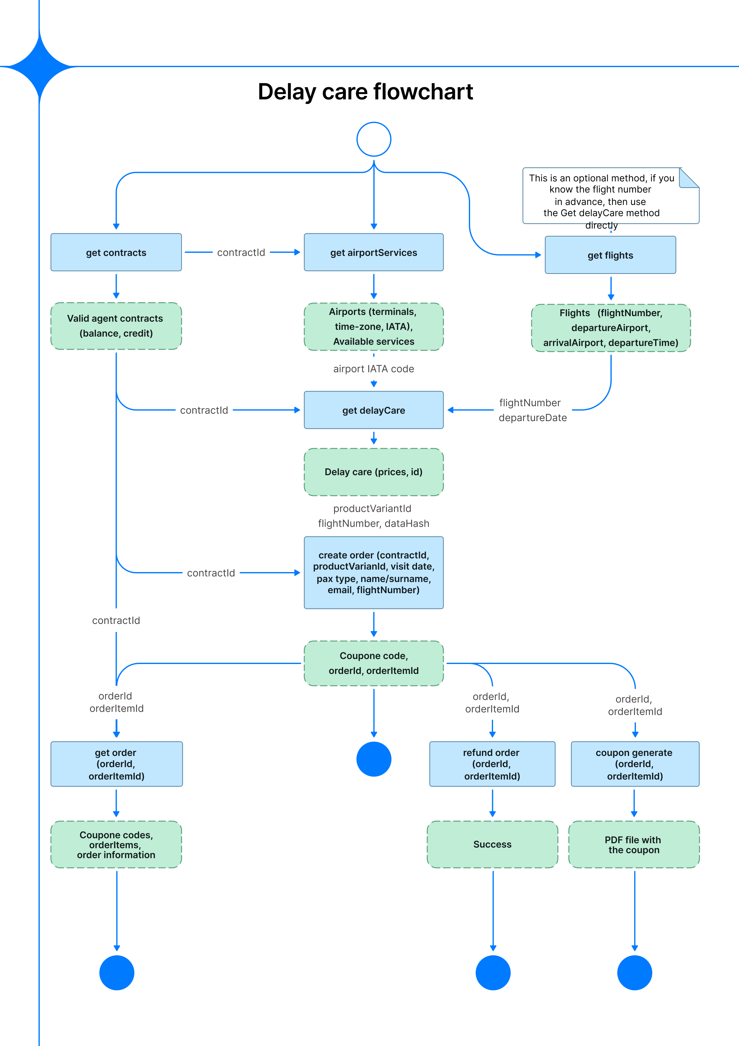 getDelayCare(contractId, departureAirport, flightNumber, date) - Parameters: